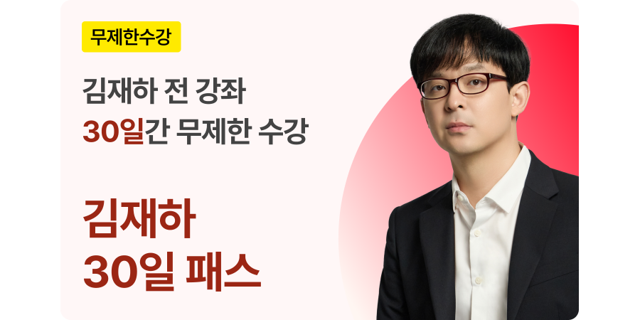 김재하 선생님의 전 강좌를 수능 당일까지 무제한 수강할 수 있으며,