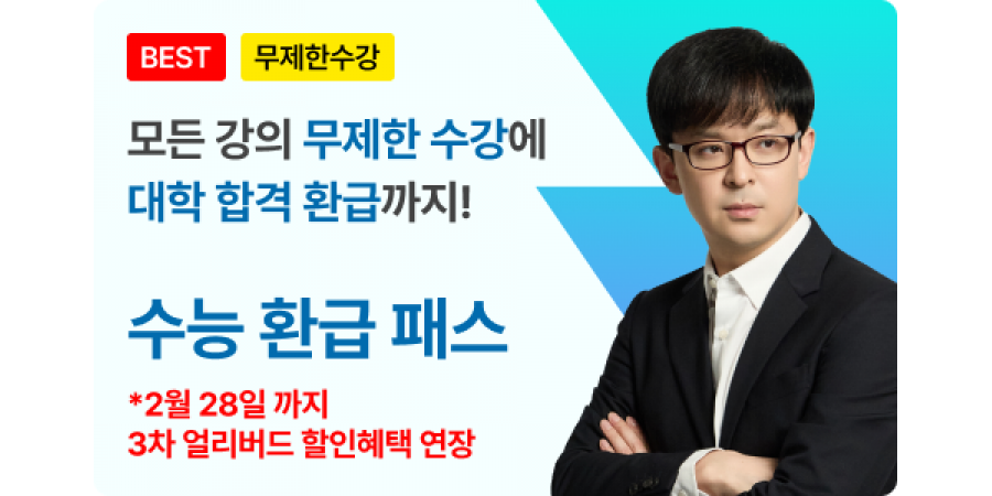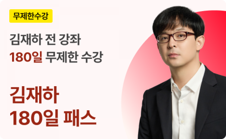 김재하 선생님의 전 강좌를 수능 당일까지 무제한 수강할 수 있으며, 합격 시 최대 전액 환급을 통해 학습 효율과 몰입도를 극대화합니다.